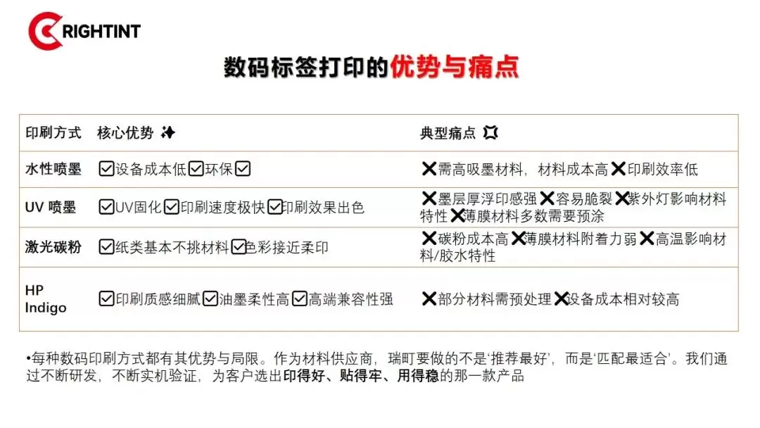 2、专业匹配的数码标签材料产品线: 瑞町提供针对不同印刷技术优化的全系列数码不干胶材料: